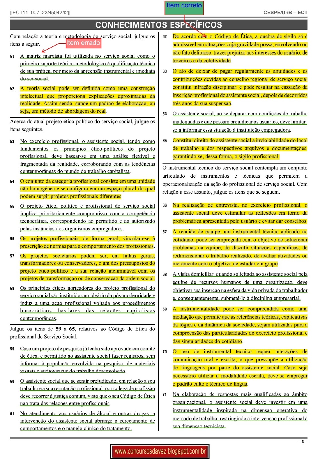 Neste material destaco em amarelo as respostas e quando são provas da CESPE sublinho em verde as questões erradas.